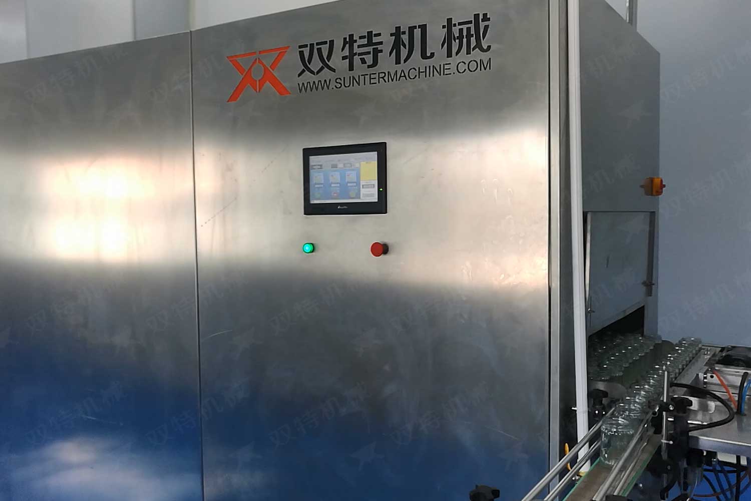 洗瓶機的過程是空瓶進入輸瓶螺桿,由星輪傳動到夾瓶工位,洗瓶的整個過程瓶底均懸空,其優(yōu)點是著力點在瓶頭和頸部,是瓶子厚硬的部分,在清洗過程中不會損傷或壓扁,洗瓶機可調(diào)整多種瓶子,且調(diào)整簡便。
